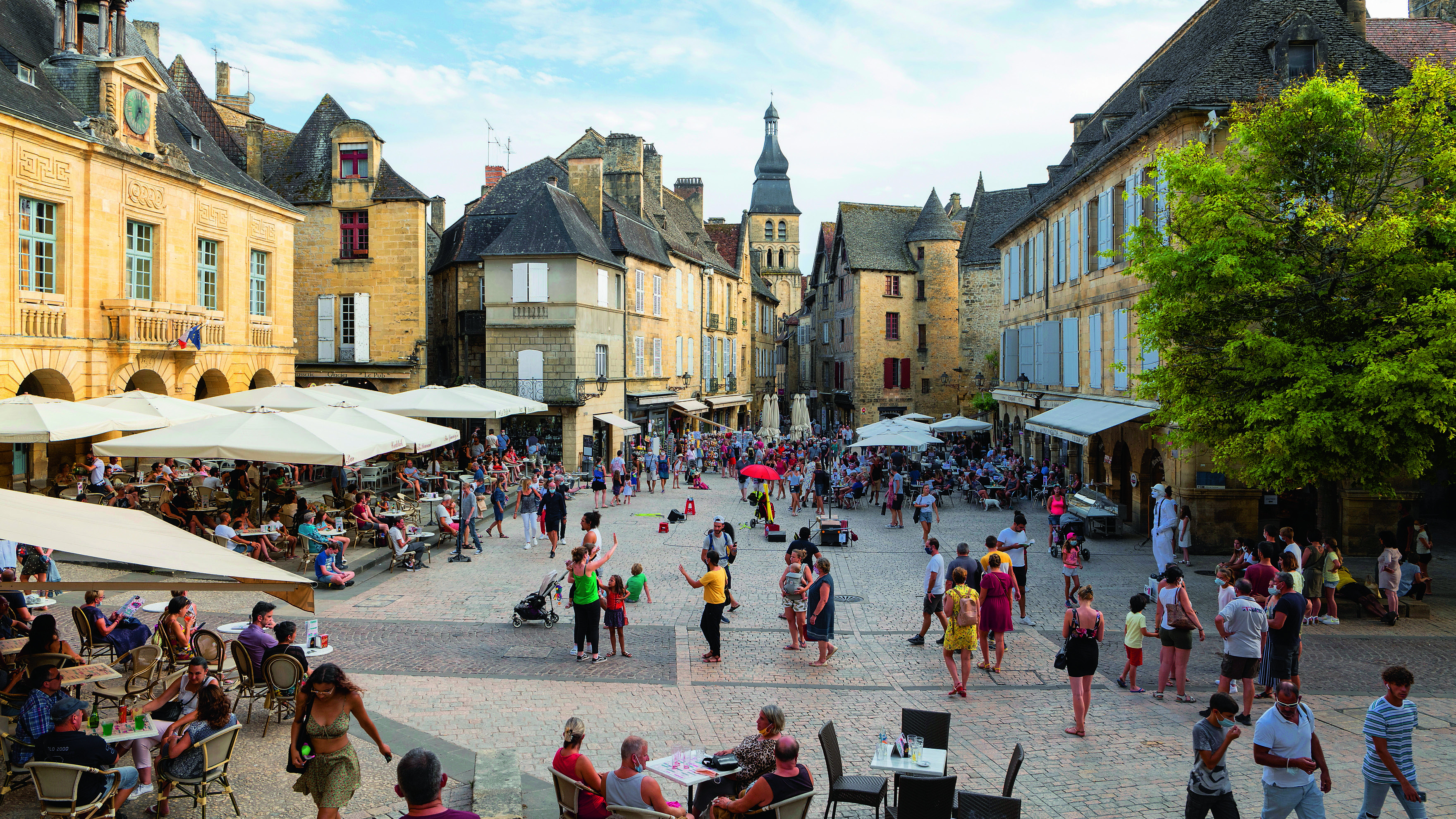 Zurück im Tageslicht, müssen sich die Augen zuerst an die Helligkeit gewöhnen, bevor die Autofahrt weiterführt ins mittelalterliche Städtchen Sarlat. Auf den ersten Blick umschliessen die historischen Gebäude des Ortes lediglich den grossen Platz der Freiheit, die Place de la Liberté. Doch es lohnt sich, die zahlreichen Nebengassen zu erkunden, rund um die Stadtkirche. Der Bummel erweist sich als eine kleine Lektion in französischer Architekturgeschichte: vom frühen Mittelalter über die Gotik bis zum repräsentativen Barock. Es ist, als wollten die Menschen jeder Epoche in Sarlat ihr bauliches Denkmal setzen, auf dass die Touristen mit der gleichen Bewunderung an sie zurückdenken wie an die Höhlenmaler in Rouffignac.