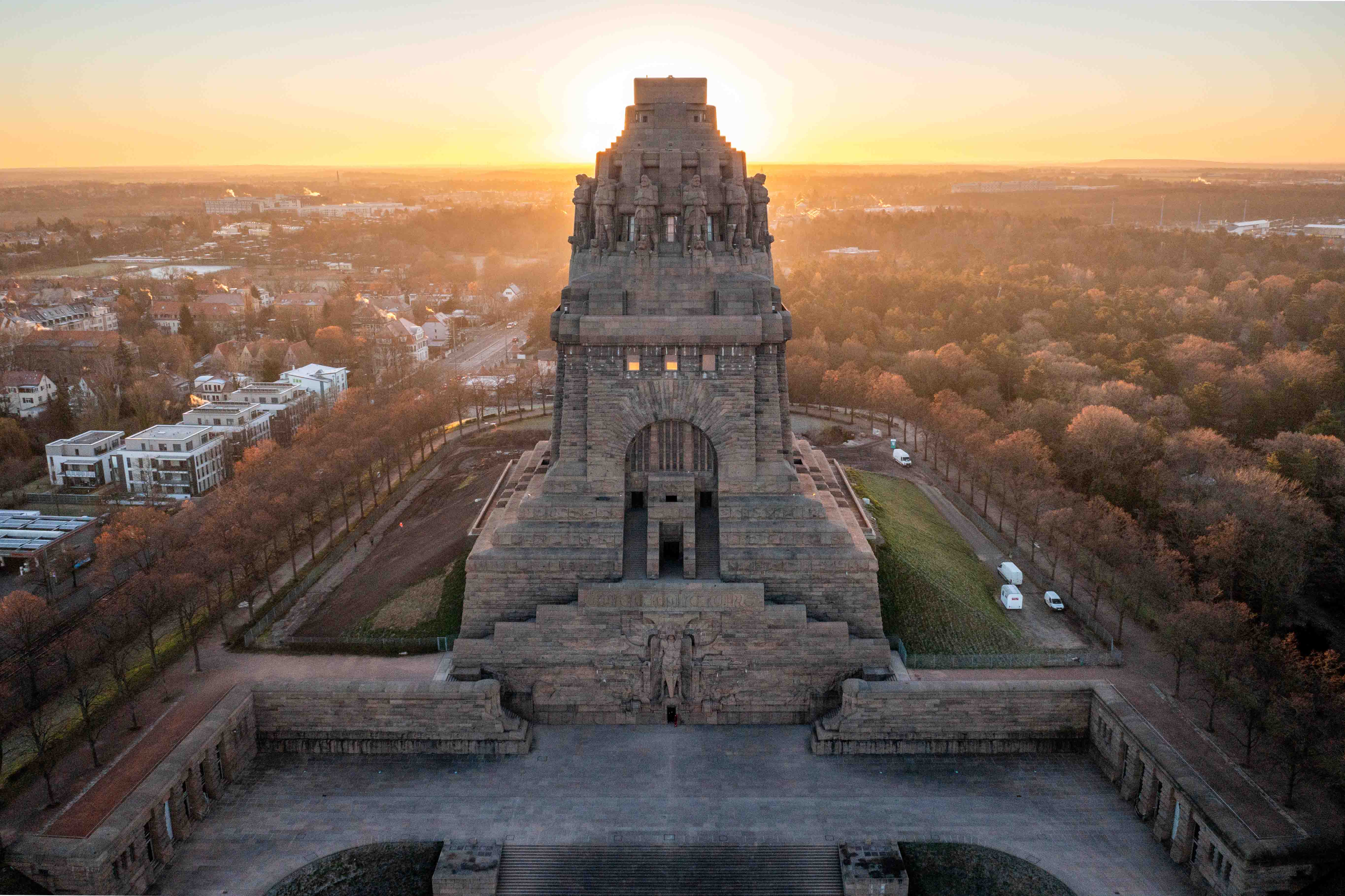 Wenn man aus der Innenstadt in Richtung Südost fährt, dann sieht man hinter dem Alten Messegelände das 91m hohe Völkerschlachtdenkmal, das an die Völkerschlacht 1813 erinnert, die zur Niederlage Napoleons führte. Die Aussichtsplattform bietet einen atemberaubenden Ausblick auf die Stadt.