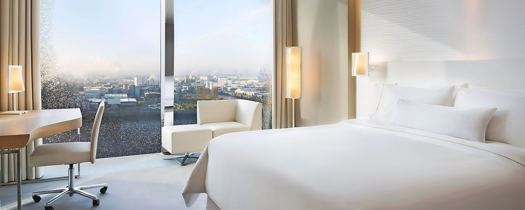 Sie wohnen im exklusiven 5* Hotel The Westin direkt in der Elbphilmarmonie. Das Lifestyle-Hotel bietet einen grossen Spa-Bereich mit Innenpool, ein Restaurant und eine Panorama-Bar mit Sicht auf den Hafen.