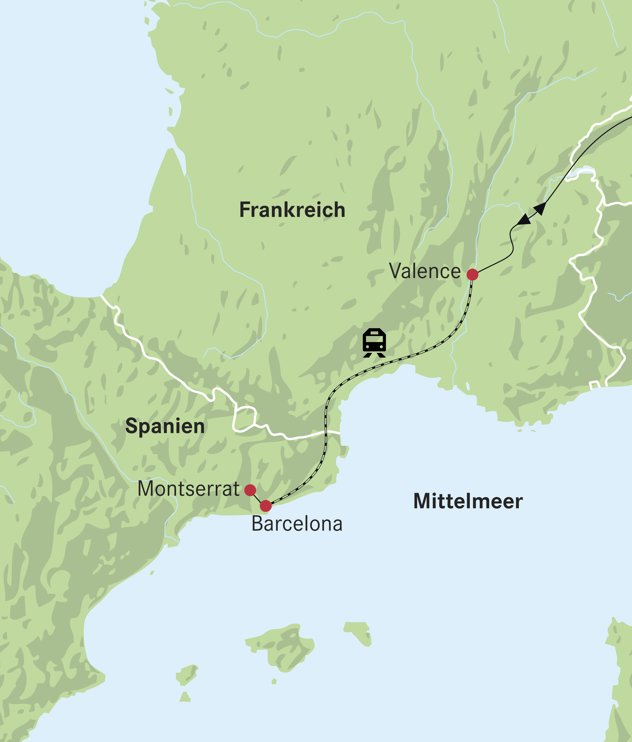 Geniessen Sie die Busreise im Deluxe-Bus in Richtung sonnigem Südwesten. Am Nachmittag wechseln Sie in Valence auf den spanischen Hochgeschwindigkeitszug AVE, der Sie bis zum Abend nach Barcelona bringt. Anschliessend erfolgt der Transfer und das Abendessen in ihrem Hotel.