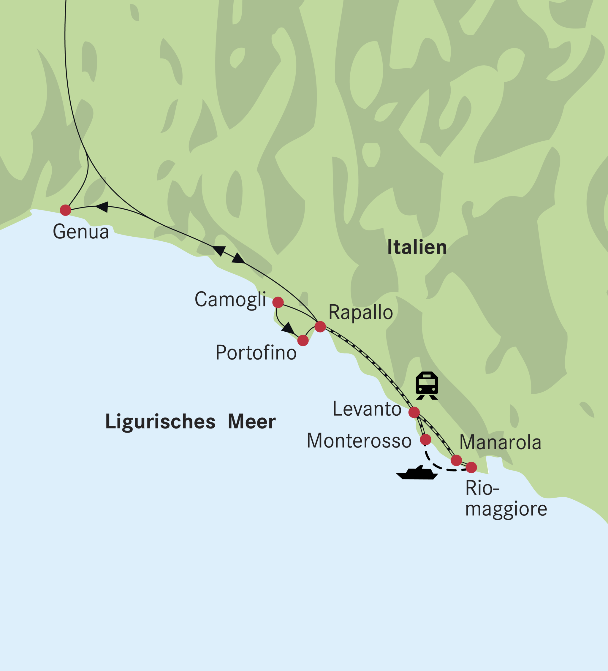 - Stadtführung Rapallo, Camogli, Portofino und Genua