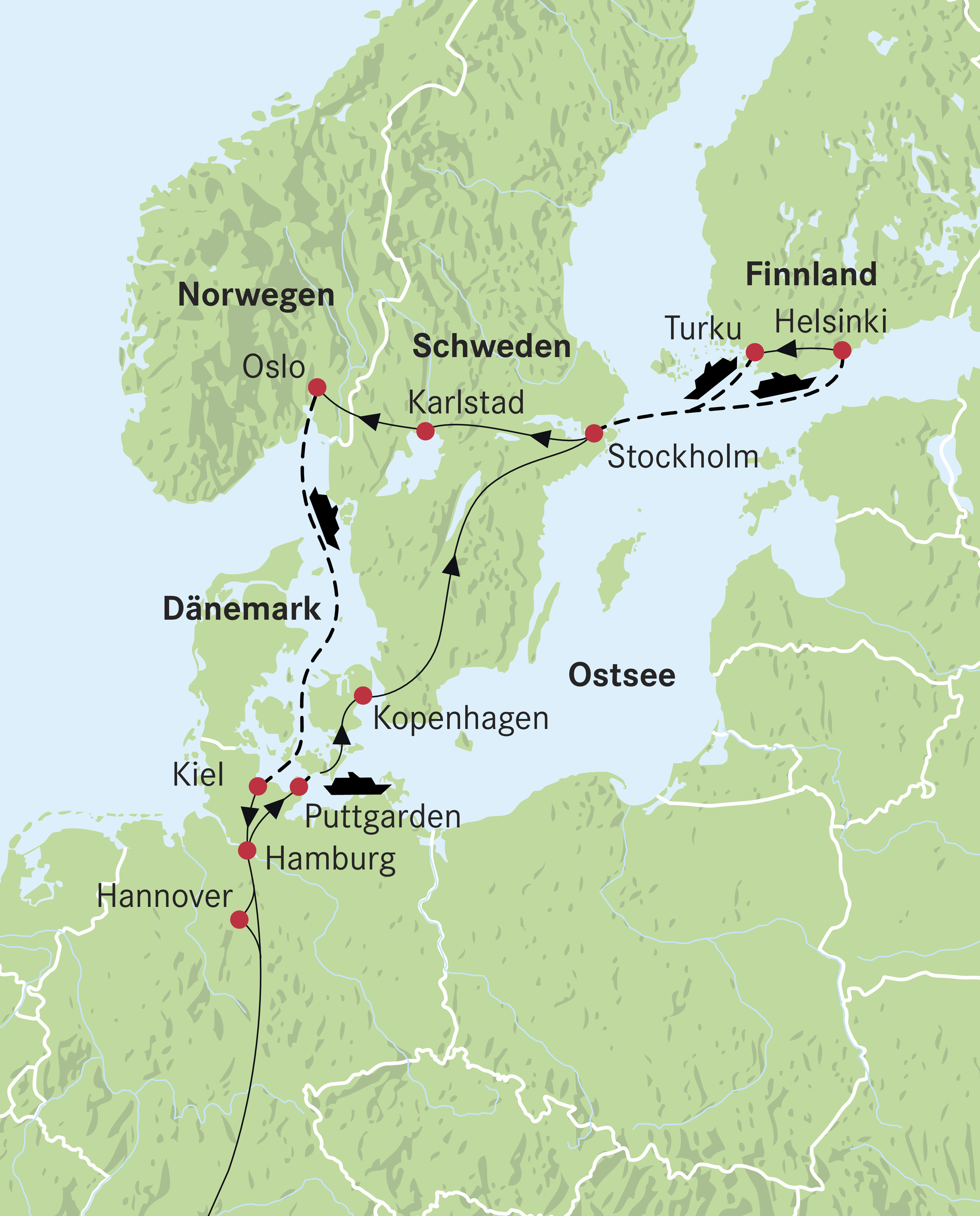- 3x Fährüberfahrten, Stockholm - Turku, Helsinki - Stockholm, Oslo - Kiel, Basis Doppelkabine innen inkl. Frühstücksbuffet