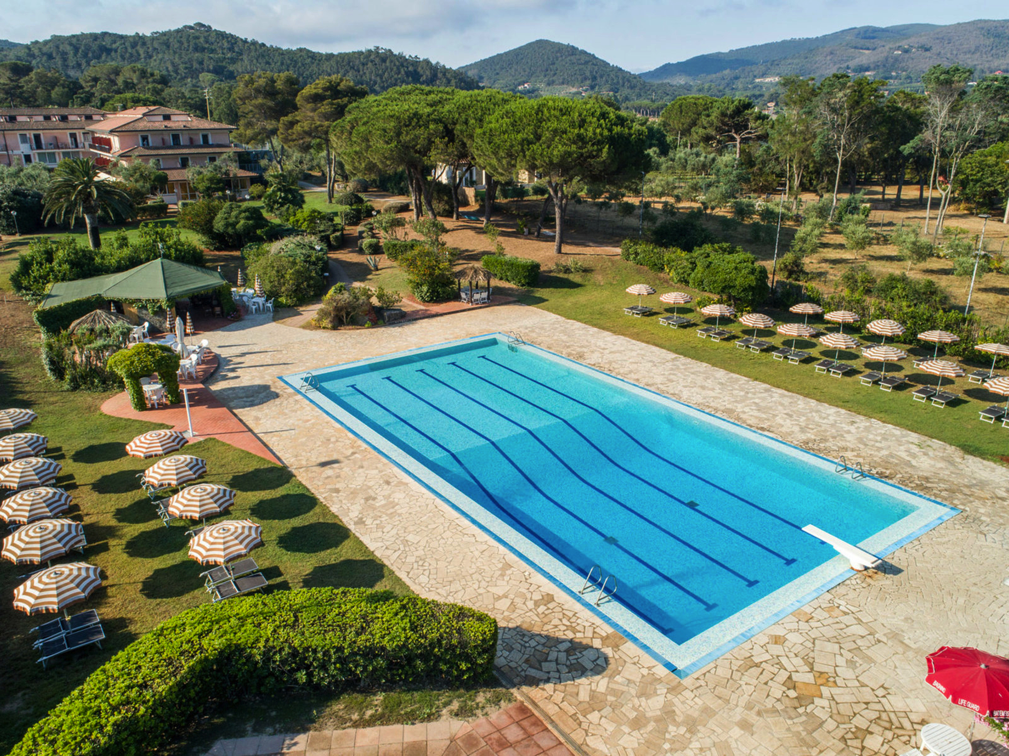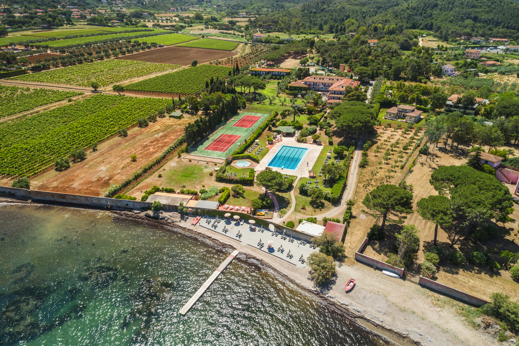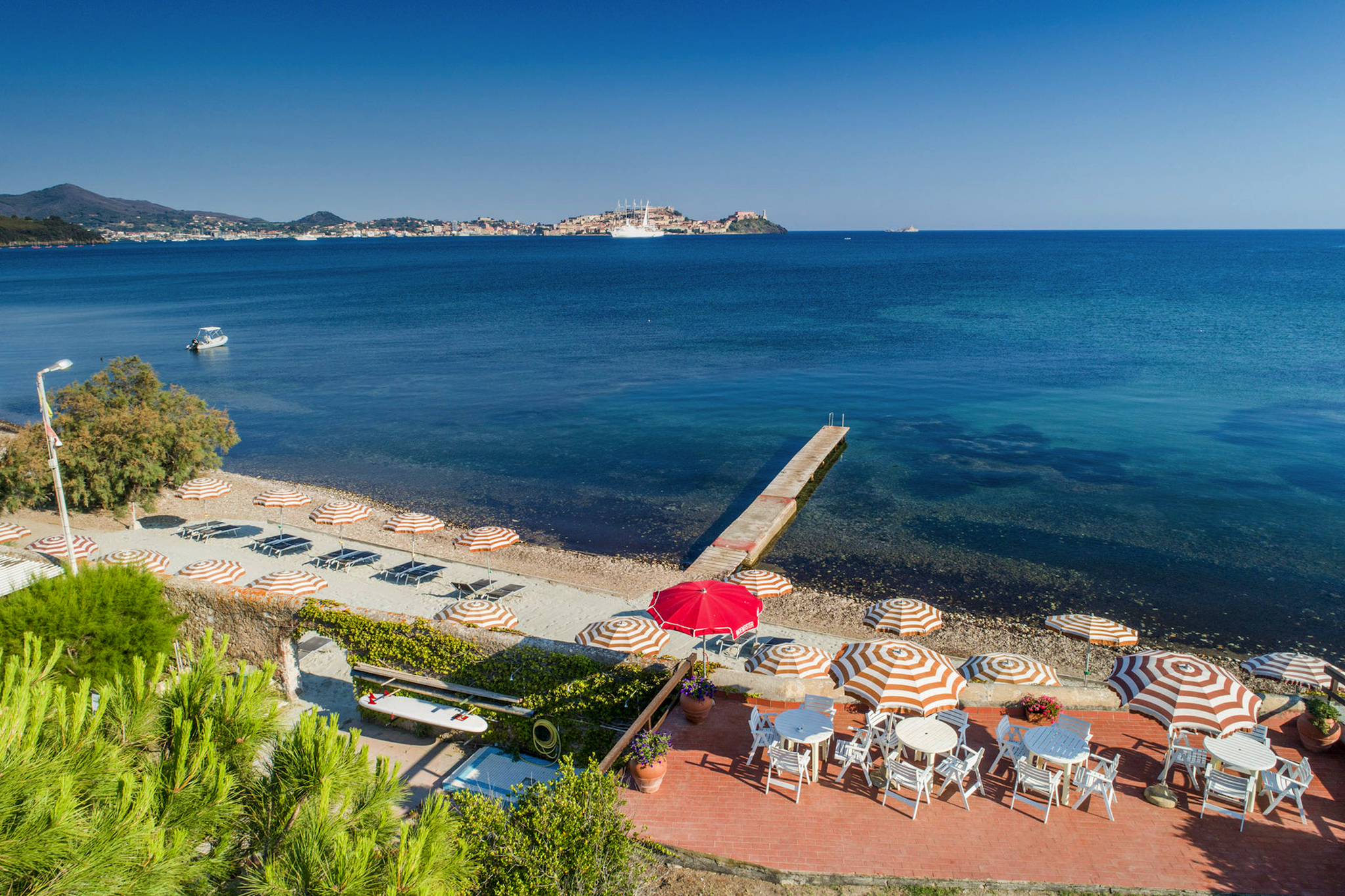 Das 4* Hotel Fabricia (offiz. Landeskategorie) liegt ruhig inmitten einer weitläufigen Gartenanlage direkt am Meer, an der Südküste von Porotoferraio. Der Privatstrand mit Badesteg, Liegen und Sonnenschirmen lädt zum Entspannen ein. Das Hotel verfügt über einen grossen Pool mit Meerblick, ein Restaurant mit Terasse sowie eine stilvolle Bar. Die 76 Zimmer sind verteilt auf das Hauptgebäude und mehrere Nebengebäude. Sie sind alle mit Dusche/WC, Fön, Klimaanlage, Sat-TV und Telefon ausgestattet. Gleichwertiges Hotel bei Nichtverfügbarkeit.