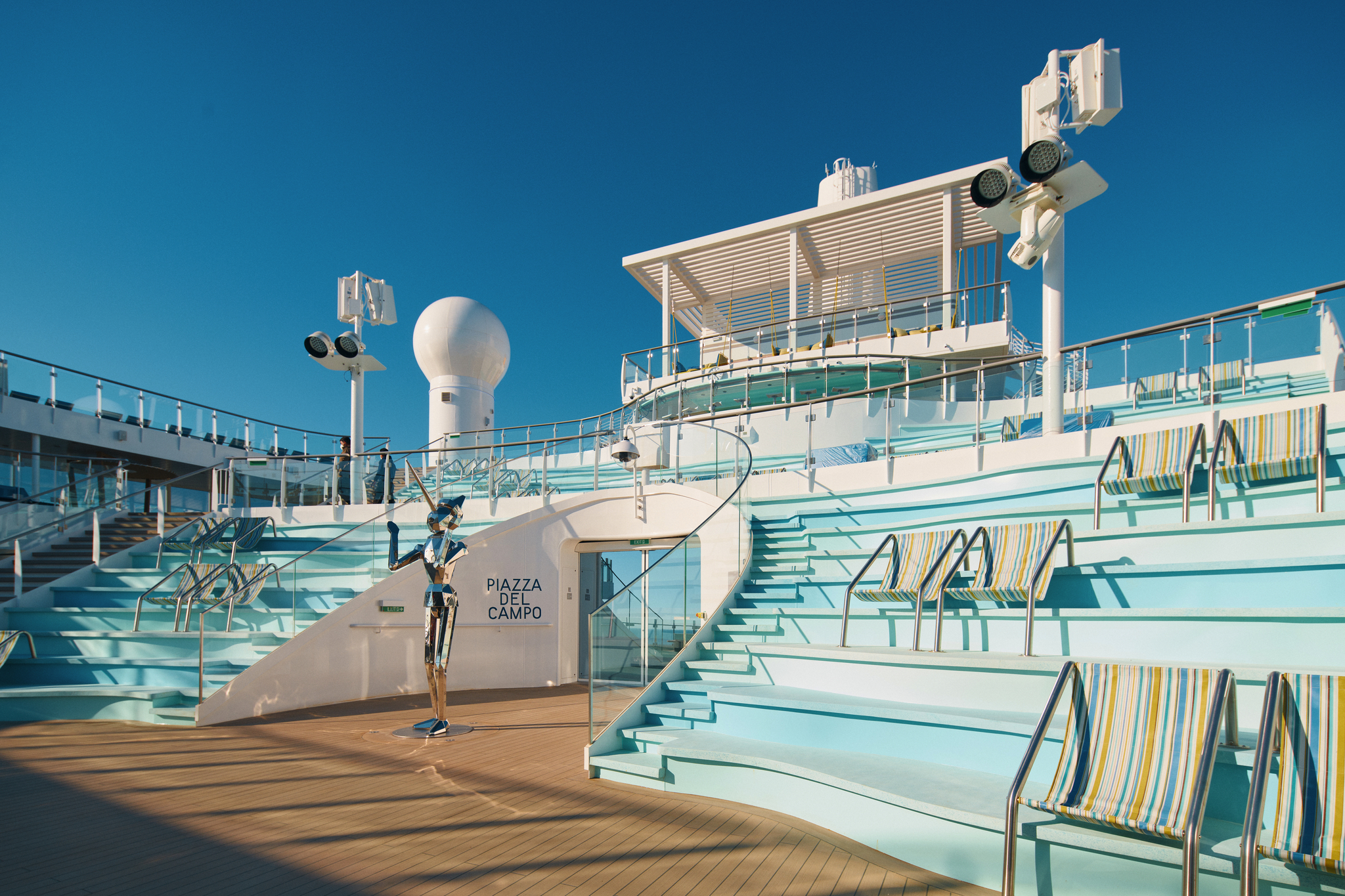 Nehmen Sie sich eine Auszeit und entspannen Sie im Beauty Spa Solemio oder geniessen Sie einen Aperol Spritz auf dem Deck 16 mit wundervollem Ausblick auf das Meer. Jeden Abend im Theater erwarten Sie spektakuläre Shows: Musicals, Comedy-Shows, Akrobaten, Spiele und vieles mehr.