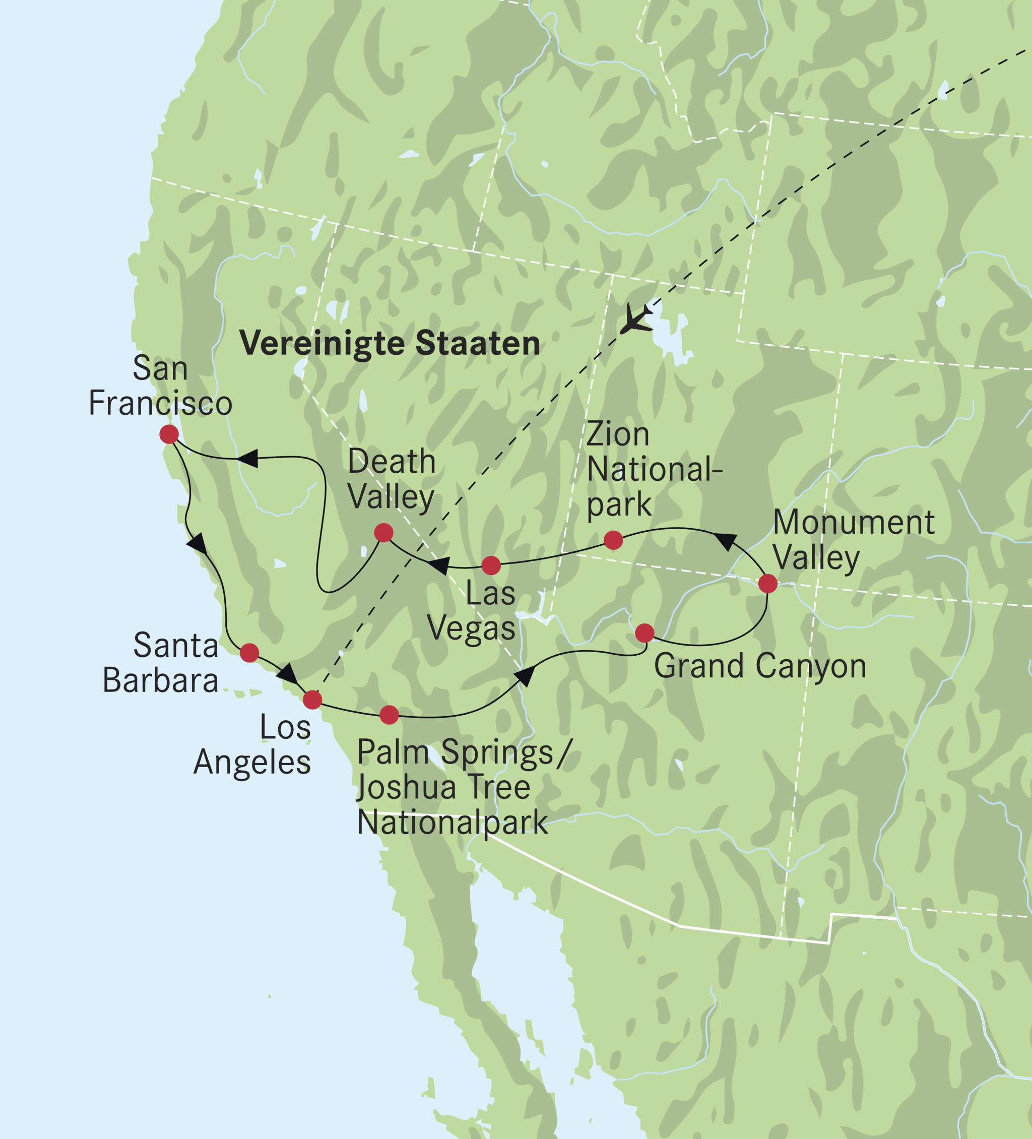 Erleben Sie das ultimative Abenteuer entlang des Westküste der USA. Tauchen Sie ein in das glitzernde Hollywood-Glamour von Los Angeles, erkunden Sie die charmante Kultur und die ikonischen Sehenswürdigkeiten von San Francisco, geniessen Sie das schillernde Nachtleben und die unvergleichliche Unterhaltung in Las Vegas. Diese Reise bietet eine perfekte Mischung aus urbanem Flair, natürlicher Pracht und aufregender Atmosphäre welche unvergessliche Erinnerungen entlang der spektakulären Westküste der USA verspricht.